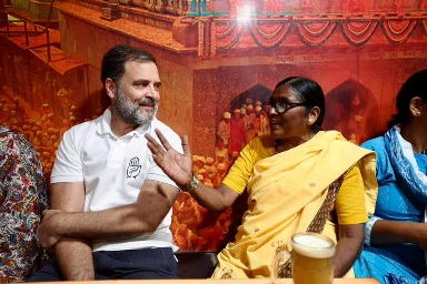 बुधवारी व्हिडिओ कॉलद्वारे साधला होता स्वच्छता कर्मचाऱ्यांशी संवाद…संसदेतील विरोधी पक्ष नेते राहुल गांधी यांनी बुधवारी नांदेडमधील महिला स्वच्छता कर्मचाऱ्यांशी संवाद साधला होता. नांदेड येथील महामंडळ मैदानावर होणाऱ्या सभेच्या स्वच्छतेचे काम सुरू असताना अचानक एक व्हिडिओ कॉल येतो आणि स्वच्छता करणाऱ्या महिलांना बोलावण्यात येते. त्यांना समोर दिसतात ते राहुल गांधी. राहुल गांधी यांनी त्यांची चौकशी केली. उषा गिरीधारी या महिलेची त्यांनी बातचीत केली. त्यावेळी महाराष्ट्रात आम्ही महिलांसाठी महालक्ष्मी योजना सुरू करत असून दरमहा ३ रुपये देण्यात येतील तसेच महिलांना बस प्रवास मोफत करण्याची सुविधा उपलब्ध होईल असे त्यांनी सांगितले. या संवादानंतर महिला स्वच्छता कर्मचाऱ्यांनी समाधान व्यक्त केले होते.