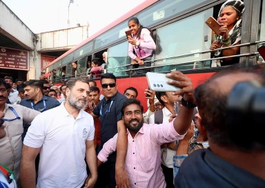 नांदेड – संध्याकाळची वेळ… दिवाळी संपल्यानंतर प्रवासी आपापल्या गावी तसेच कामाच्या ठिकाणी जाण्यासाठी नांदेड मध्यवर्ती बसस्थानकात बसची वाट पाहत आहेत. काही कळायच्या आतच पोलिसांचा ताफा बसस्थानकाचा ताबा घेतो. अन् तपासणी सुरू होते. अचानक सुरू झालेल्या या तपासणीमुळे प्रवासी काही काळ वैतागतात खरे.. पण अचानकपणे त्यांना समोर दिसतात ते काँग्रेसचे नेते, संसदेतील विरोधी पक्षनेते राहूल गांधी. अरे… खरच आपण त्यांना प्रत्यक्षपणे पाहत आहोत अन् तेही मध्यवर्ती बसस्थानकात… यावर अनेकांचा विश्वासच बसेनाच. पण हे खरे होते संसदेतील विरोधी पक्ष नेते राहुल गांधी गुरुवारी सायंकाळी नांदेड येथील नवीन मोंढा मैदानावरील सभा आटोपून सर्वसामान्य माणसांना भेटण्यासाठी थेट नांदेड मध्यवर्ती बस स्थानकात पोहोचले होते.