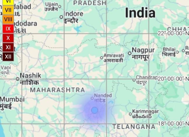नांदेड – नांदेड जिल्ह्यात मुखेड तालुक्यातील हिब्बट, कोळगाव, धामणगाव, मोटरगा, धनज व जामखेड या गावामध्ये आज ११ फेब्रुवारी रोजी दुपारी ३:२५ वाजता भूकंपाचे सौम्य धक्के जाणवले. भूगर्भातून आवाज येऊन जमीन हादरली असल्याची माहिती ग्रामस्थांनी प्रशासनाला दिली. राष्ट्रीय भूकंप विज्ञान केंद्राच्या संकेतस्थळावर याबाबत तपासणी केली. दुपारी ३: २६ वाजता या धक्क्याची नोंद झाली. या धक्क्याची तीव्रता रिश्टर स्केलवर ३.० इतकी नोंदविण्यात आली आहे. या भूकंपाचा केंद्रबिंदू नांदेड जिल्ह्यातील मुखेड तालुक्यातील खपराळ गावाजवळ आहे. सदर धक्का हा अतिसौम्य प्रकारचा आहे तसेच या धक्क्यामुळे कुठलीही जीवित व वित्त हानी झाली नसल्याबाबत मुखेडचे तहसीलदार राजेश जाधव यांनी सांगितले.