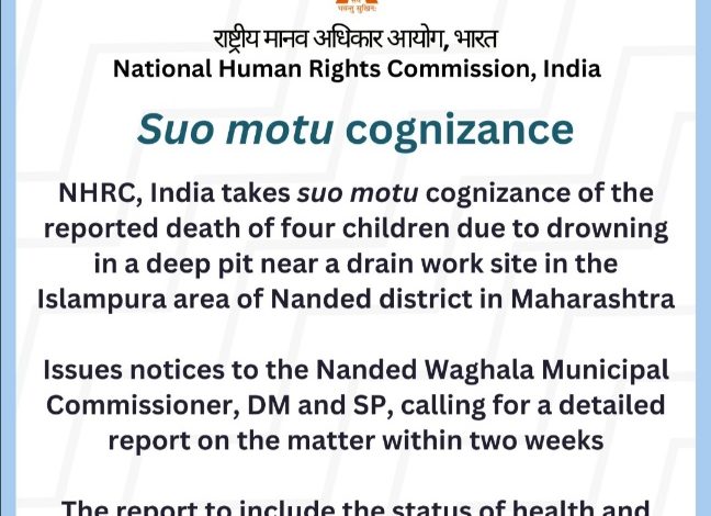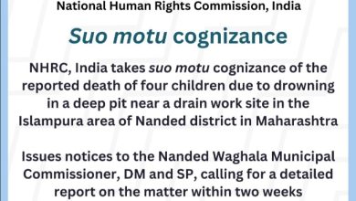 नांदेड – नांदेड महापालिकेकडून सुरू असलेल्या इस्लामपुरा भागात एका नाल्याच्या कामात चार बालकांचा १६ एप्रिल रोजी बुडून मृत्यू झाला होता.…